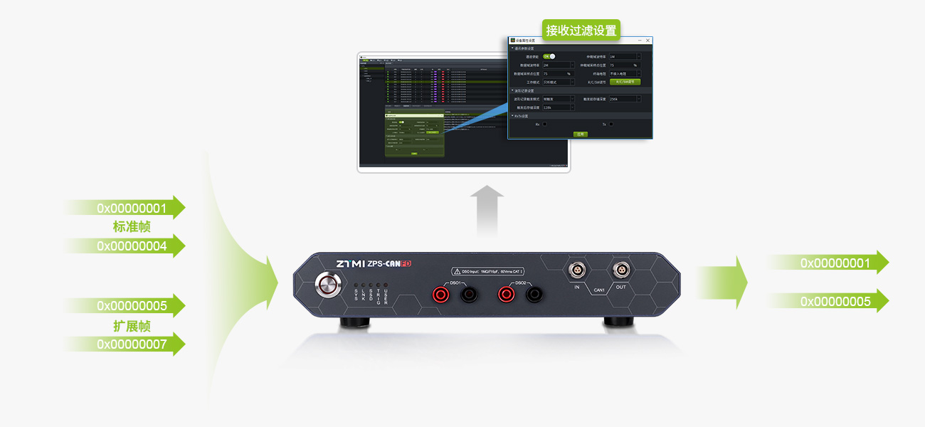 ZPS-CAN FD分析儀支持一鍵設(shè)置設(shè)備屬性,可實(shí)現(xiàn)波特率、采樣點(diǎn)、終端電阻的實(shí)時(shí)調(diào)節(jié),ZPS-CANFD提供總線電阻/電容負(fù)載/斷短路/線纜錯(cuò)誤連接的調(diào)整,模擬應(yīng)用環(huán)境總線受負(fù)載變化及連接異常影響下的通信情況。