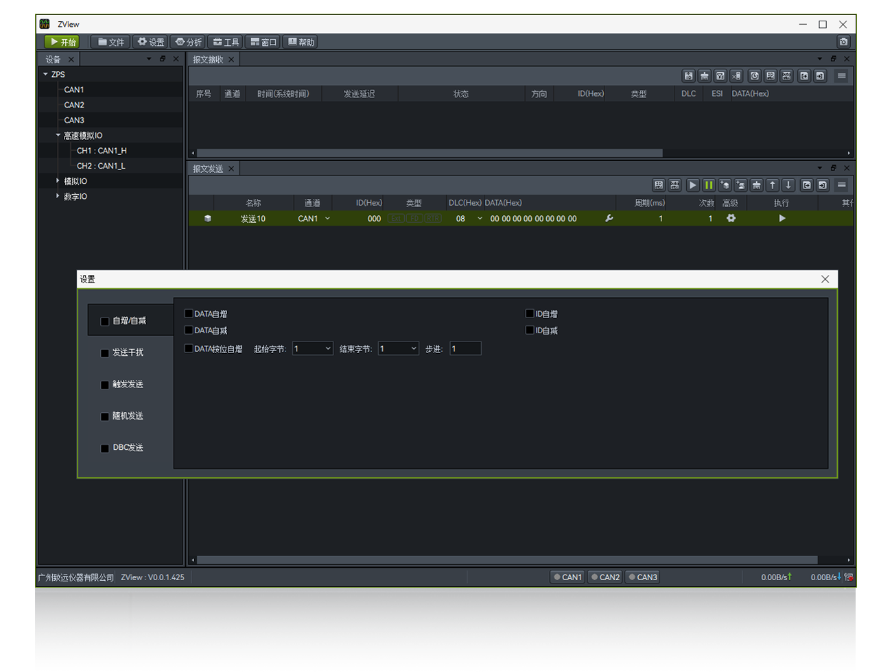 支持立即、周期和條件發(fā)送功能,可便捷地構(gòu)建總線通信測(cè)試任務(wù)