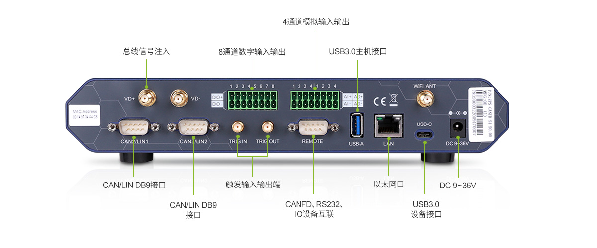 通用數(shù)字及模擬IO等其他外設(shè),在系統(tǒng)同步/觸發(fā)采集下的數(shù)據(jù)能用于對(duì)目標(biāo)系統(tǒng)的時(shí)序分析和運(yùn)行狀態(tài)監(jiān)控,這些外設(shè)端口也可以作為二次開(kāi)發(fā)用于設(shè)備的功能模擬和測(cè)試輔助。