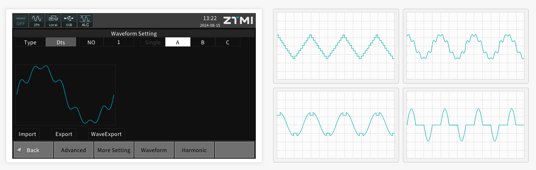 內(nèi)置波形庫含40余種常用測試波形,便捷調(diào)用,并可添加自定義波形,可模擬各類偶發(fā)異常電網(wǎng)情況。