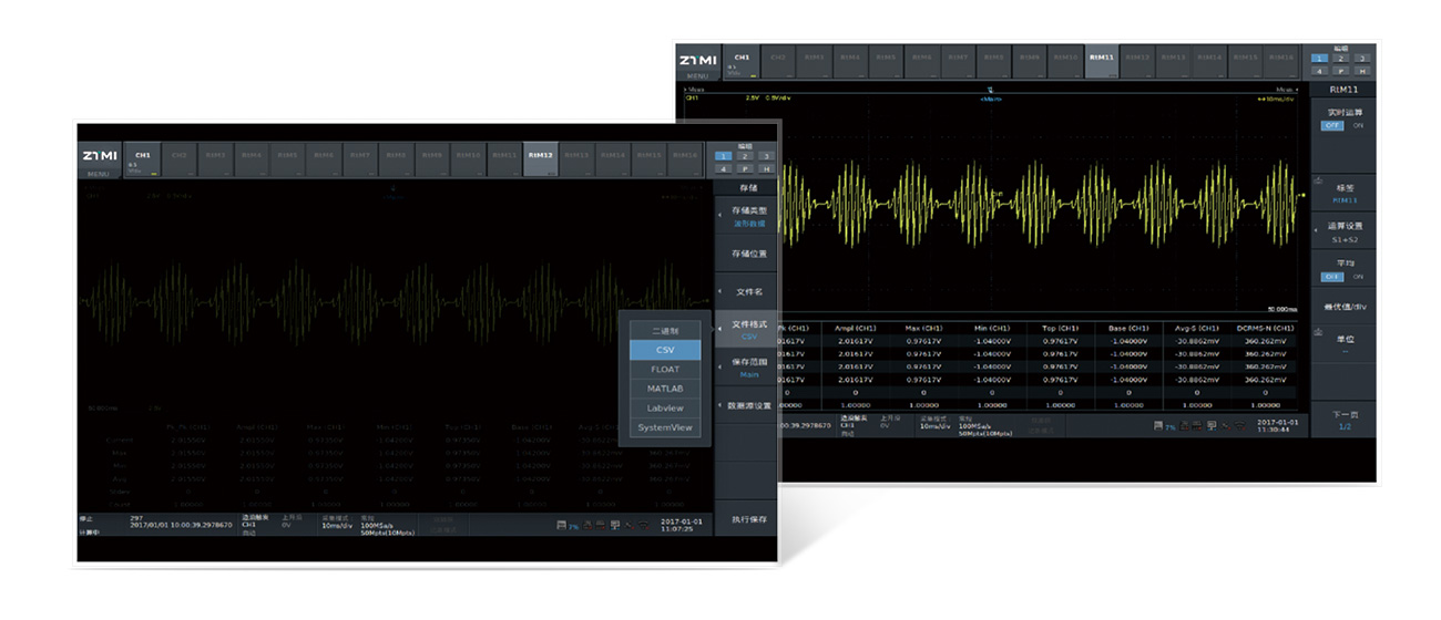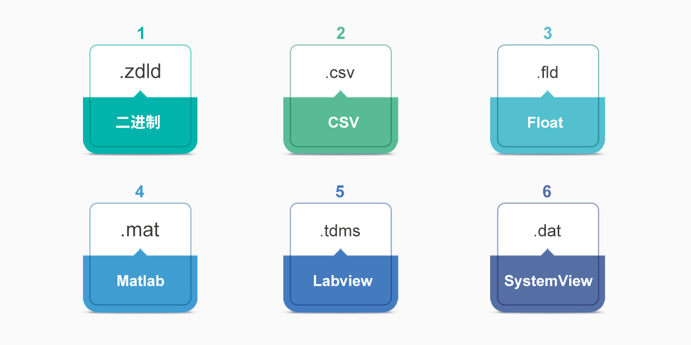 除了標(biāo)準(zhǔn)的格式之外,ZDL5000示波記錄儀還支持直接導(dǎo)出二進(jìn)制、CSV、FLOAT、matlab、labview、SystemView等標(biāo)準(zhǔn)格式,用戶可以直接使用數(shù)據(jù)的標(biāo)準(zhǔn)文件進(jìn)行深層次的數(shù)據(jù)分析,無論是數(shù)據(jù)二次回讀、開發(fā)軟件分析都十分便捷。