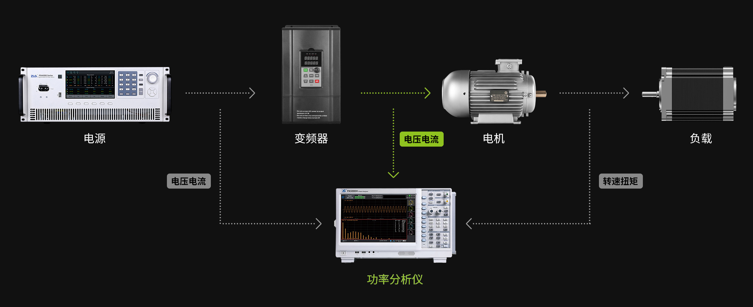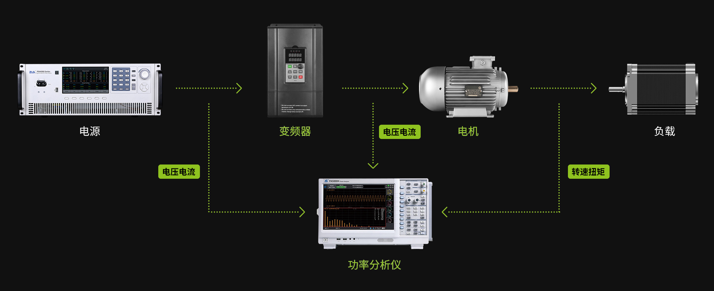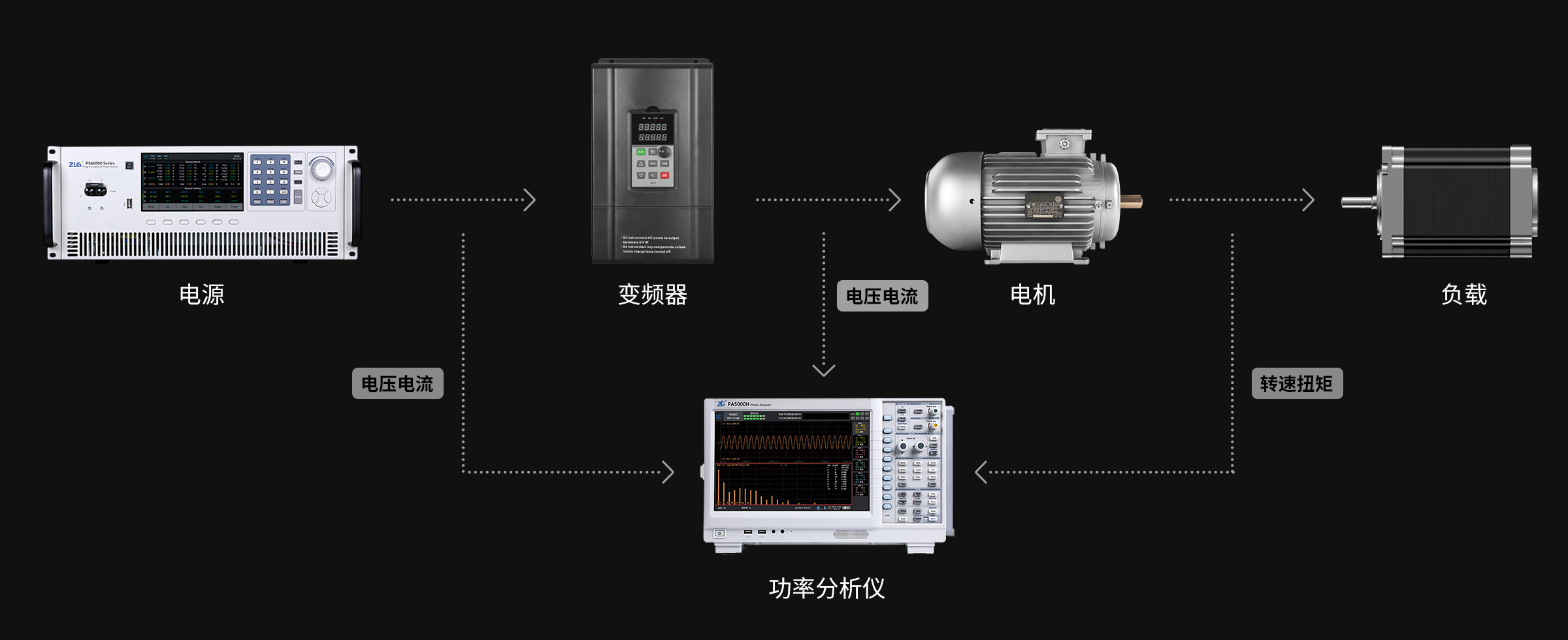 使用功率分析儀進行變頻器電功率、電機機械功率的同步效率評估