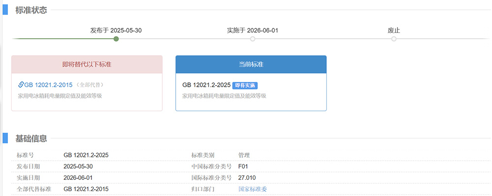 新版GB 12021.2-2025《家用電冰箱耗電量限定值及能效等級(jí)》,將于2026年6月1日起正式實(shí)施。新標(biāo)準(zhǔn)對(duì)能效等級(jí)體系進(jìn)行了全面優(yōu)化,在保持5級(jí)分類(lèi)框架的基礎(chǔ)上,大幅提升各等級(jí)能效要求,并引入了更為科學(xué)的判定方法。這一變革將重塑冰箱能效評(píng)價(jià)體系,對(duì)整個(gè)行業(yè)產(chǎn)生深遠(yuǎn)影響。
