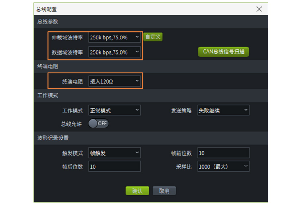 注:對三種元素如何選擇評估,可根據需要設置權重,如只對邊沿速率評估,CAN信號質量總分=(邊沿速率評分x100+穩定幅值評分x0+反射失真評分x0)÷100。