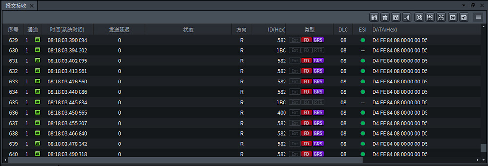 第三步,開啟ZPS軟件中的CAN1通道按鈕,采集一段時間DUT發送的報文;