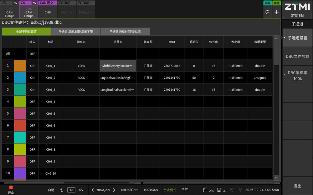 ● 子通道機(jī)制:每一路CAN通道均提供60個(gè)虛擬子通道,專門用于關(guān)聯(lián)DBC文件中的信號(hào)參數(shù)。