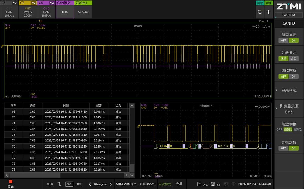 報(bào)文收發(fā)、DBC解析與物理波形同步分析