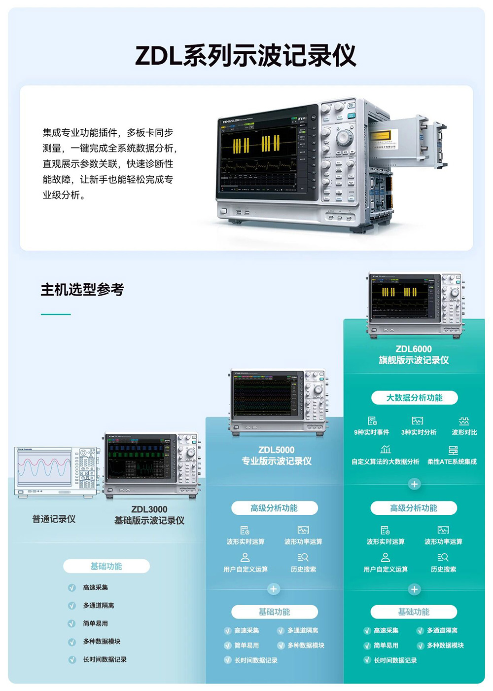 ZDL系列示波記錄儀基于模塊化設(shè)計(jì),主機(jī)具備8個(gè)標(biāo)準(zhǔn)板卡插槽。這種結(jié)構(gòu)允許測(cè)試人員根據(jù)具體的項(xiàng)目規(guī)模,通過(guò)自由組合不同的采集板卡,構(gòu)建出多通道、多參數(shù)的同步測(cè)試系統(tǒng)。