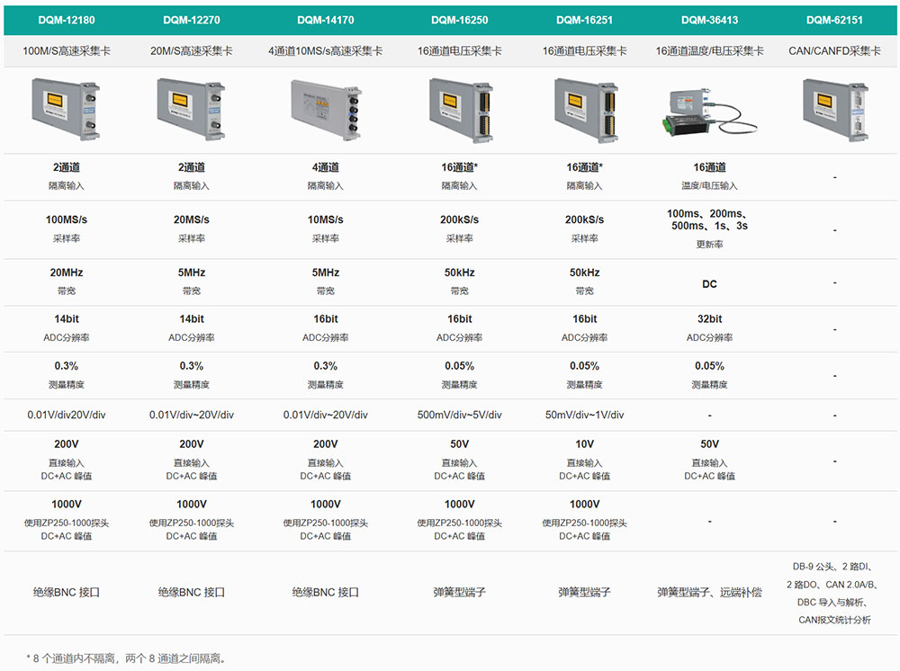 主機(jī)提供8個(gè)標(biāo)準(zhǔn)化擴(kuò)展插槽(如圖1),用戶可以根據(jù)實(shí)際測(cè)試項(xiàng)目需求,從電壓、溫度、CAN總線等不同類型的采集板卡中自由組合(板卡類型如圖2),實(shí)現(xiàn)按需配置。