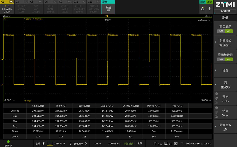 示波模式:高采樣,捕捉瞬態(tài)異常